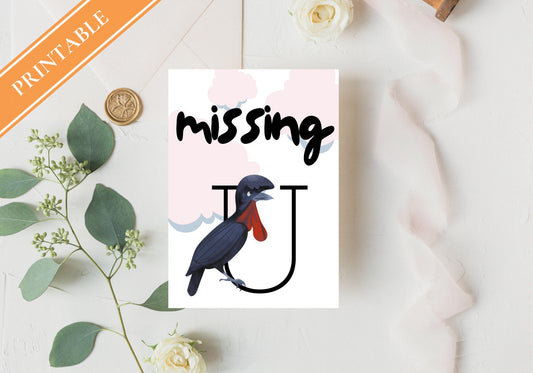 Missing You - Black Bird I Miss you Printable Greeting Card