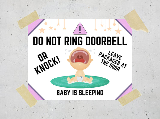 DO NOT KNOCK- Ring Doorbell, Baby is Sleeping - Warning Sign, Printable Sign, Digital Sign, | Humor | Funny