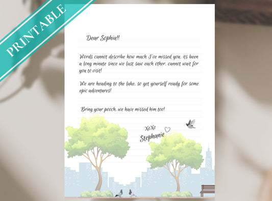 NY Central Park Pigeons Printable Stationery Paper - Journal Paper, Letter, Note | City Life