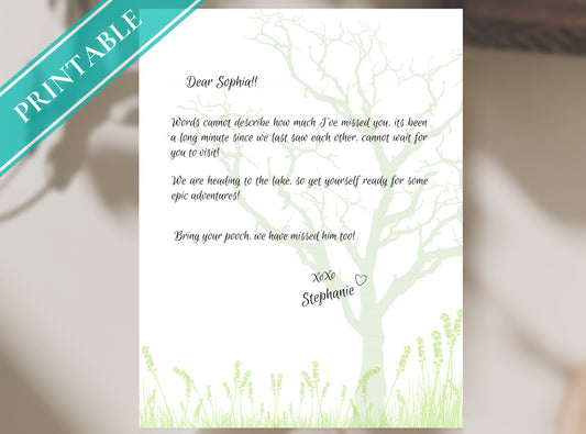 Nature Trees Printable Stationery Paper - Digital Green Journal Paper, Letter, Note, Thank you Note, Download | Nature