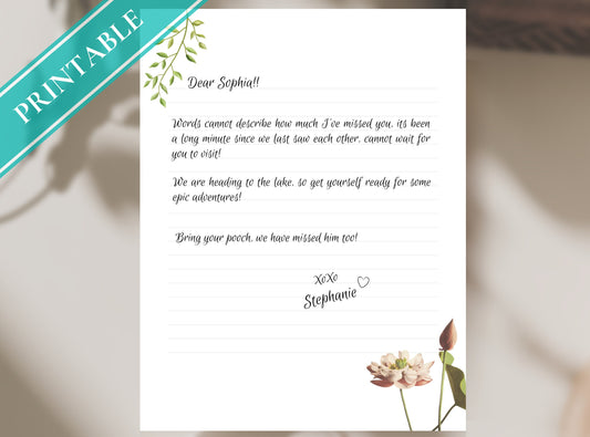 Poppies Flowers Letter Writing Paper - Printable Stationery - Love Letter, Journal Paper, Note, Lined, Goodnotes, Thank You | Cute Animals