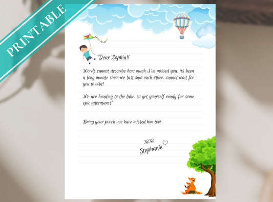 Kids Friendly Letter Writing Paper - Printable Stationery - Journal Paper, Letter, Teachers Note, Thank You, Lined Paper | Flying Kite