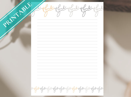 Printable Stationery Paper - Journal Paper, Letter, Note, Lined Paper | Thank You