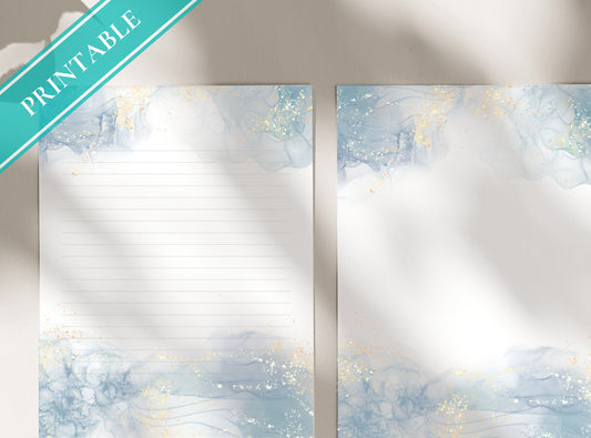 Pretty Blue Alcohol Ink, Printable Stationery Paper - Light Color Watercolor, Journal Paper, Letter, Note, Lined Paper, GoodNotes
