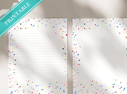Polka Dots Letter Writing Paper - Printable Stationery Colorful dots, Party fun Journal Paper, Thank You Note, Digital, Goodnotes