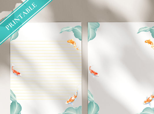 Koi Fish Letter Writing Paper - Printable Stationery - Love Letter, Journal Paper, Note, Lined, Goodnotes, Thank You Note | Nature