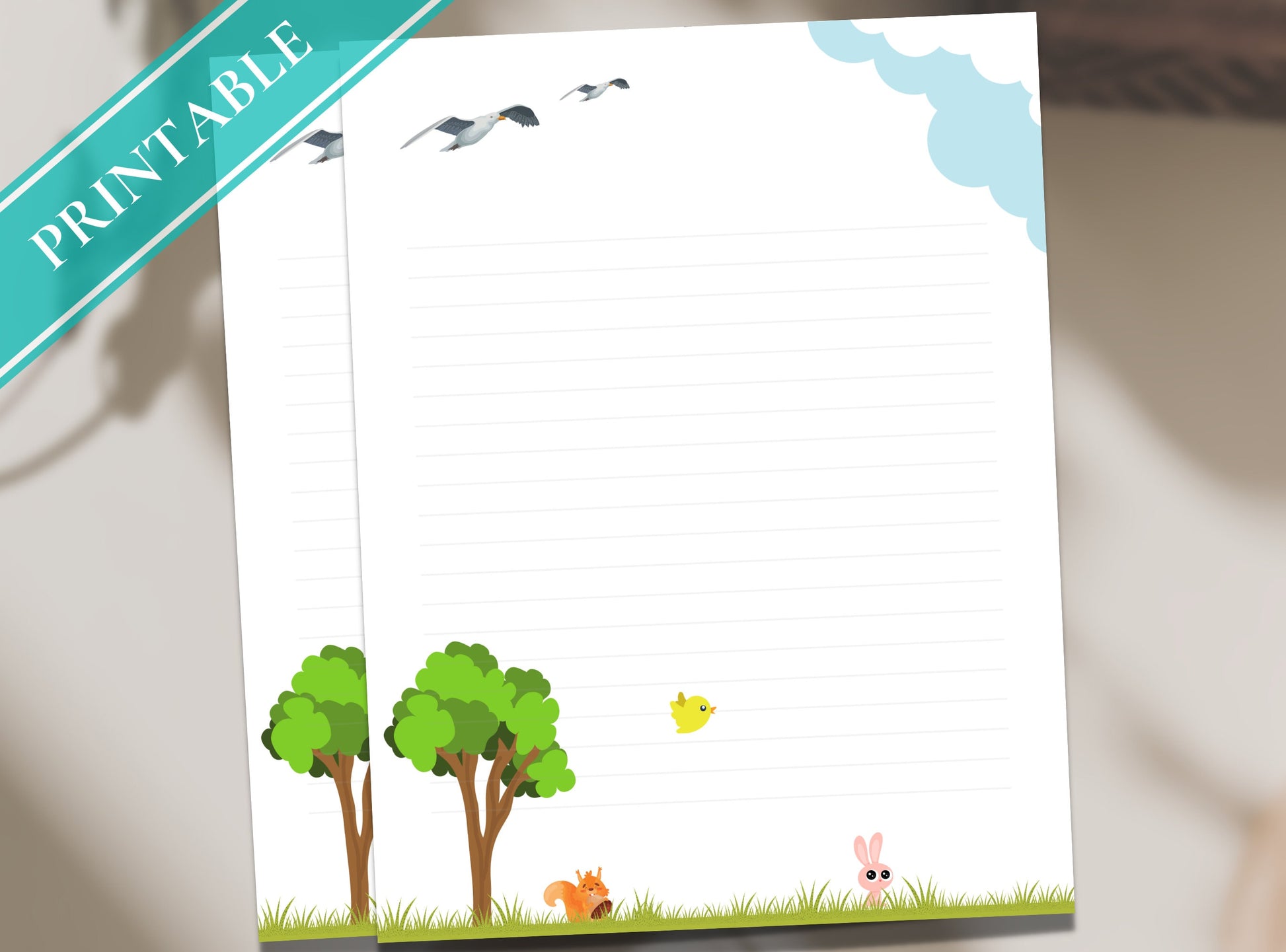 Cute Animals Friends Printable Stationery Paper - Journal Paper, Letter, Note, Lined Paper | Bunny Critters | Little Paradise
