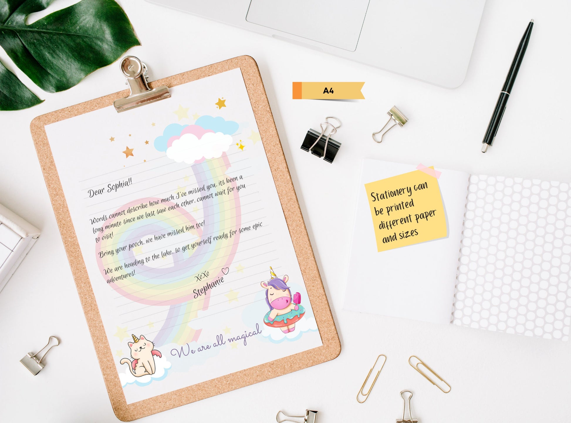 Cute Rainbow Unicorn Kitty Printable Stationery Paper - Journal Paper, Letter, Note, Lined Paper, GoodNotes | We are all Magical