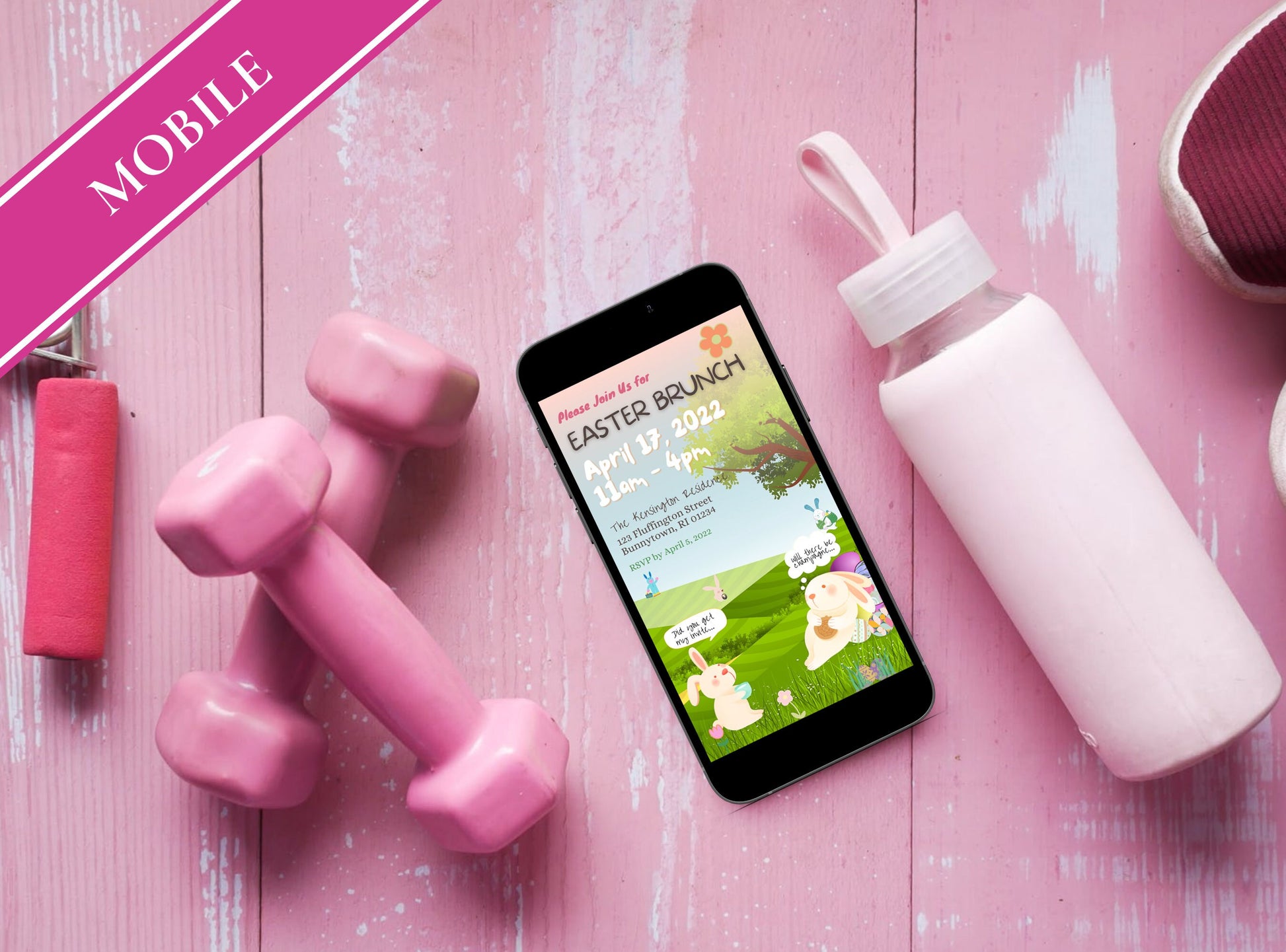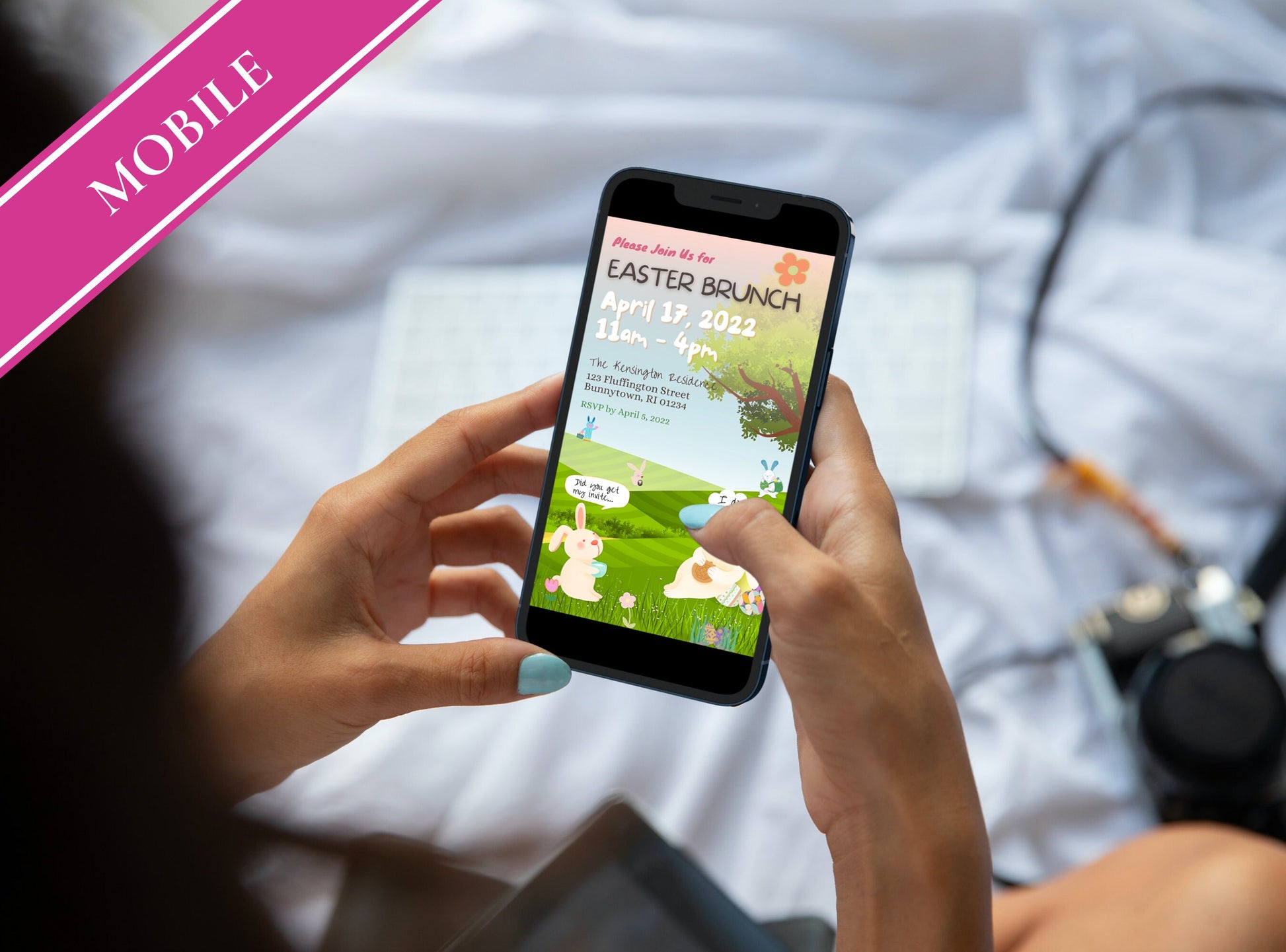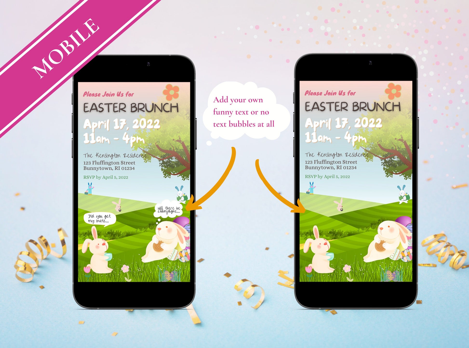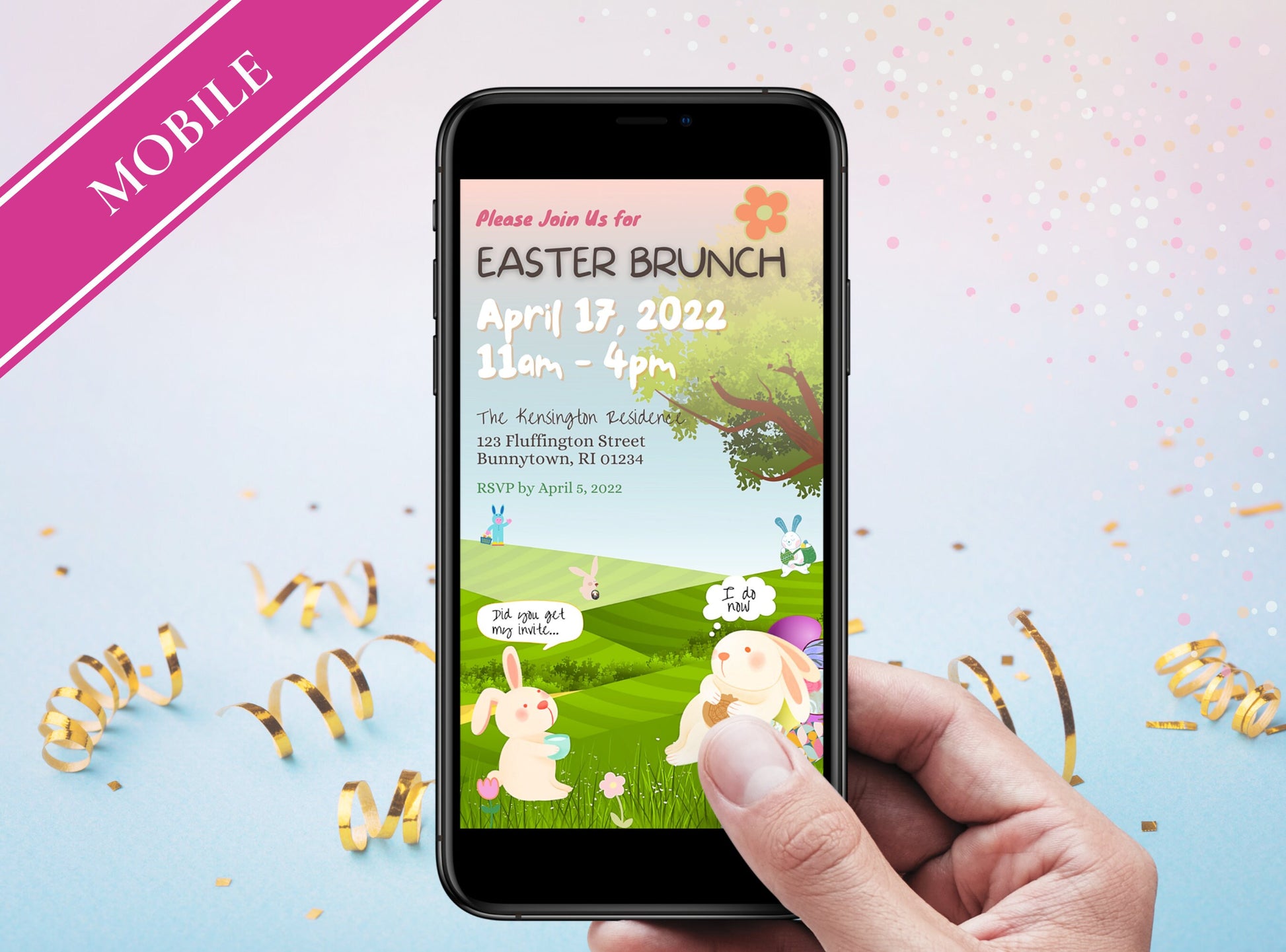 Easter Brunch Invite - Easter Bunny Sunday Cartoon Party Mobile Evite Egg Hunt Party Invitation | Funny Easter Invite