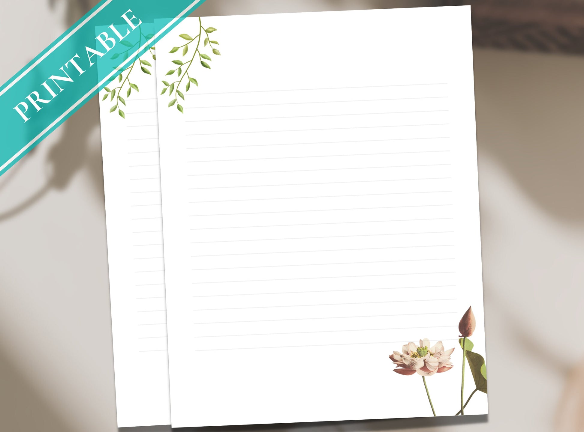 Japanese Lotus Flower Printable Stationery Paper - Journal Paper, Letter, Note, Lined Paper | Florals