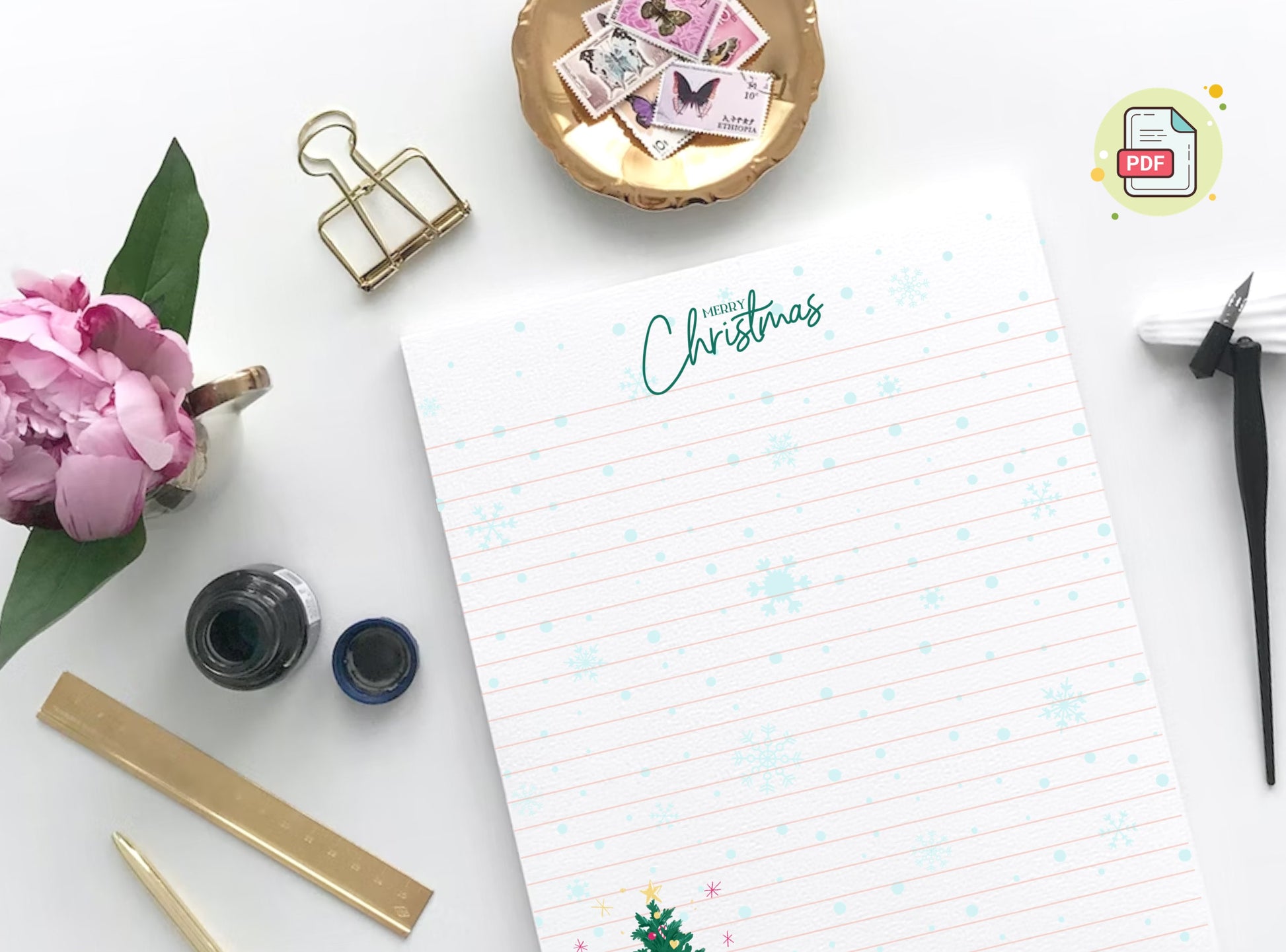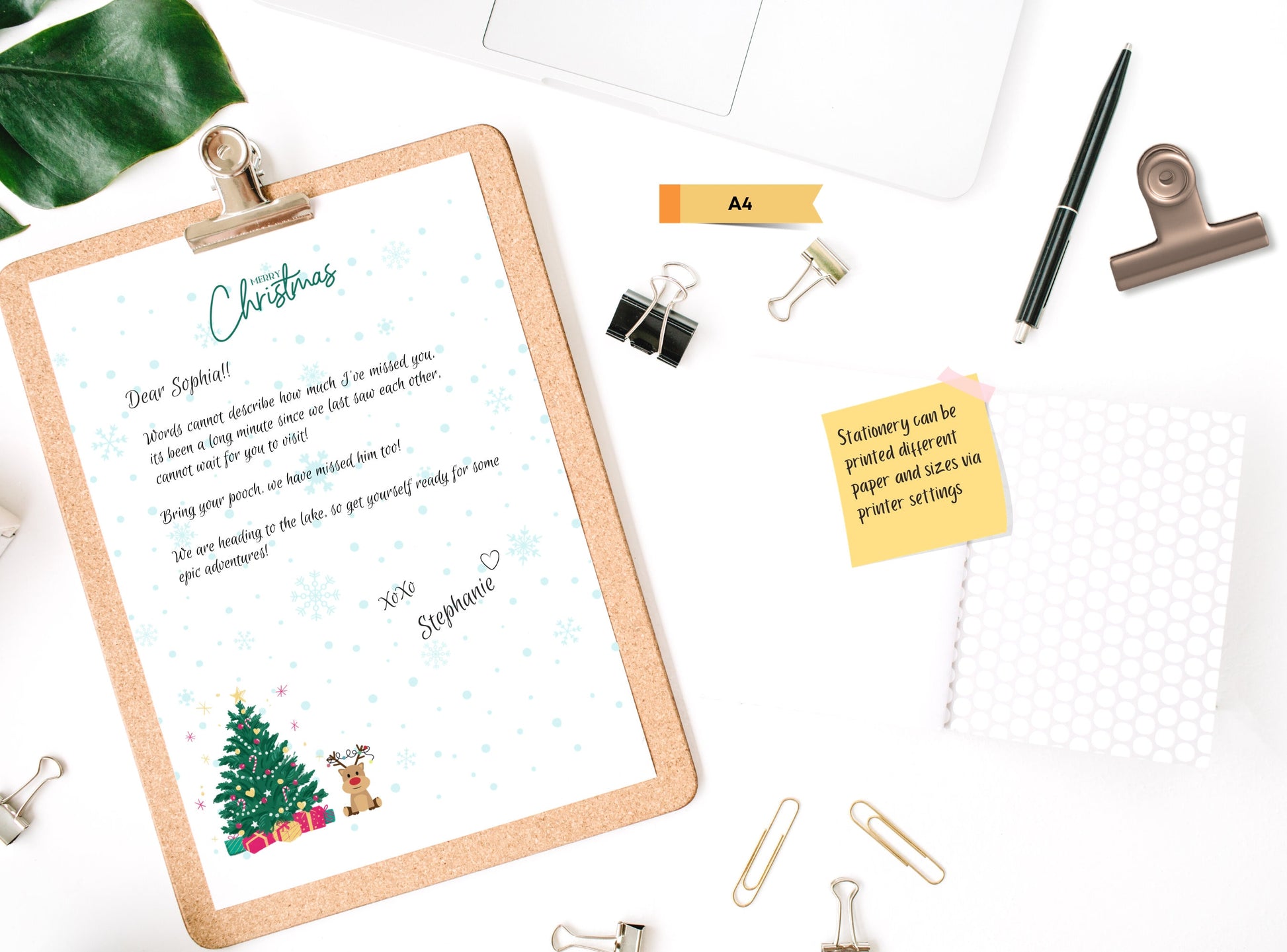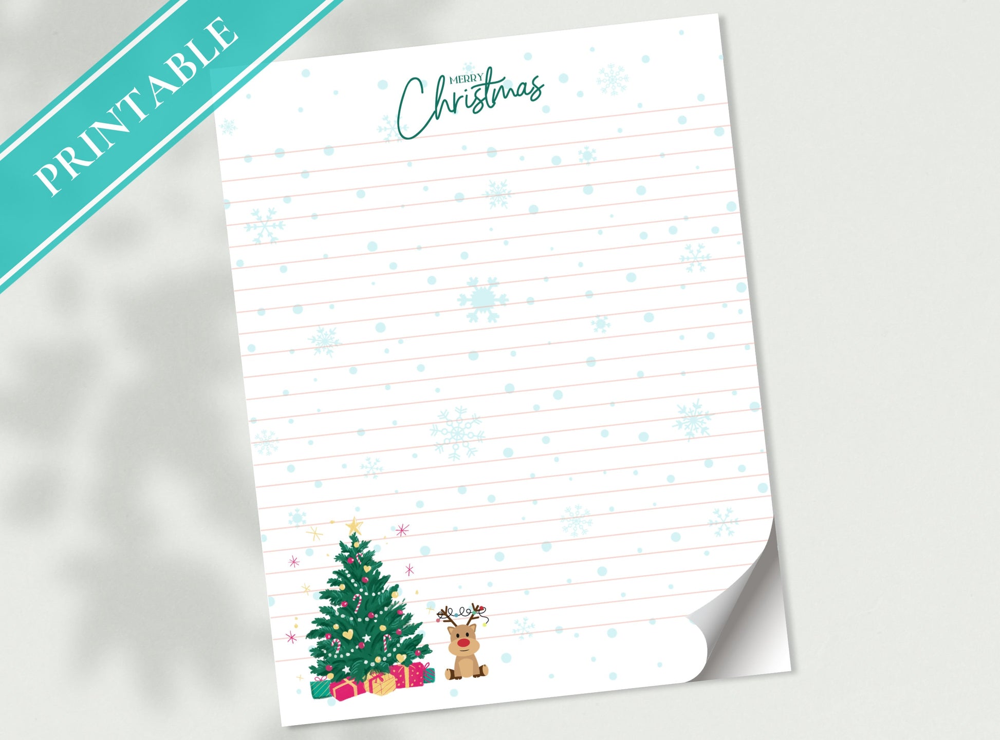 Merry Christmas Tree Reindeer Stationery Letter Writing Paper - Printable letter, Love Letter, Journal Paper, Lined, Goodnotes | Holidays