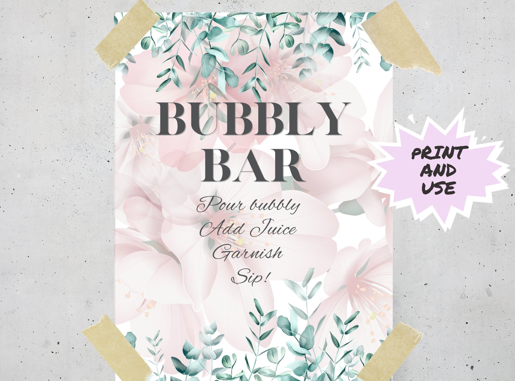 Mimosa Bar Sign - Bubbly Bar Sign, Champagne, Open Bar Wedding Bar Printable Sign - Pink Florals Blossoms Drinks Menu Sign