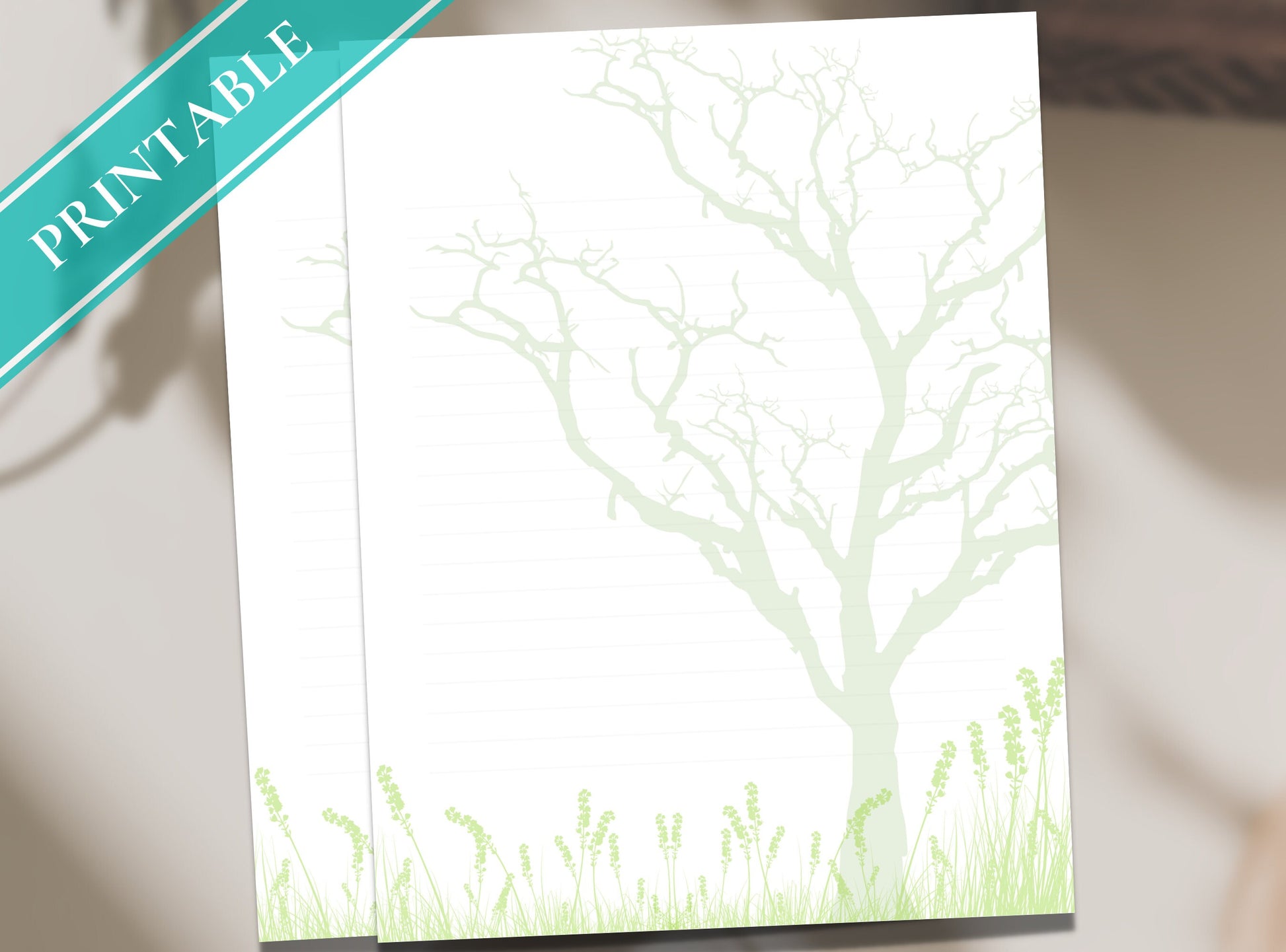 Nature Trees Printable Stationery Paper - Digital Green Journal Paper, Letter, Note, Thank you Note, Download | Nature