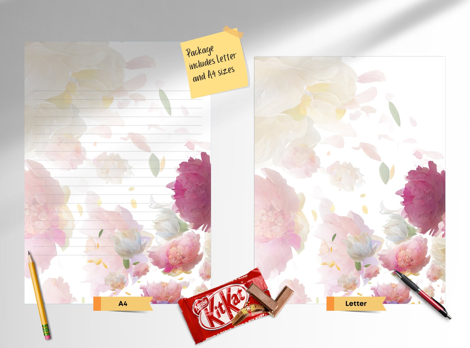 Peonies Flowers Printable Stationery Paper - Pretty Florals, Journal Paper, Letter, Note, Lined Paper, Digital Letter, GoodNotes | Peony