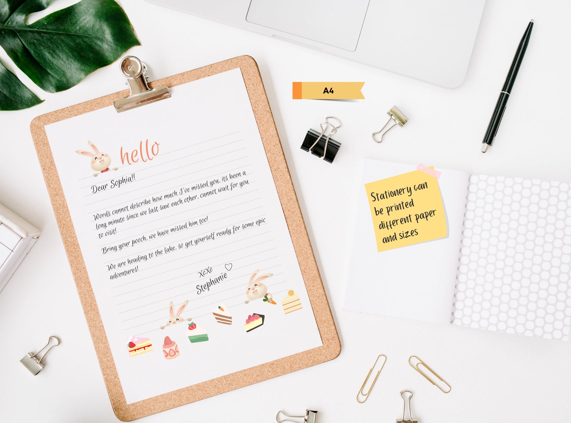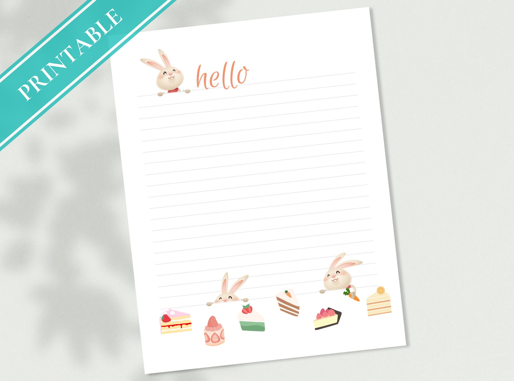 Sweet Bunny Printable Stationery Paper - Journal Paper, Letter, Note, Lined Paper, GoodNotes | Bunnies and Sweets