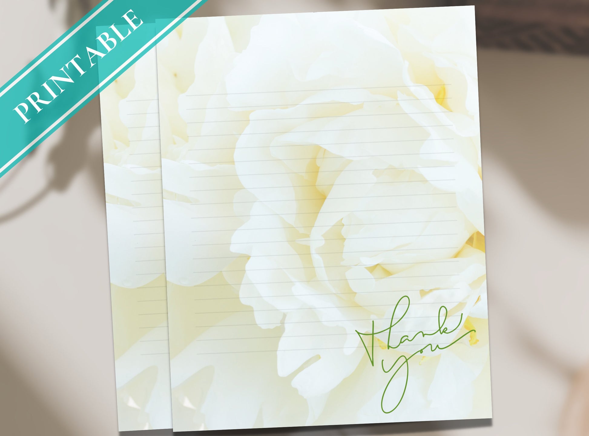 Yellow Peony Printable Stationery Paper - Journal Paper, Letter, Note, Lined Paper | Florals | Peony | Thank You